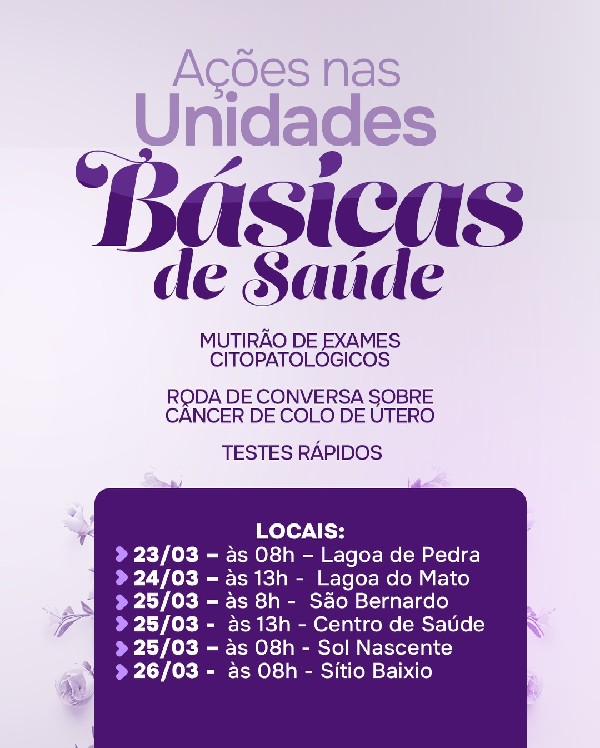 Março é tempo de cuidado, prevenção e atenção à saúde da mulher. A campanha Março Lilás reforça a importância do diagnóstico precoce e do acesso aos serviços de saúde como forma de proteger vidas.